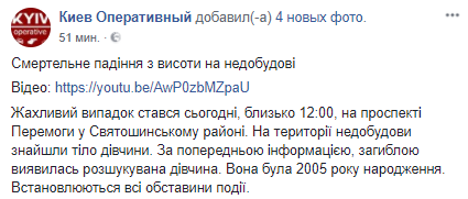 В пятницу, 16 марта, в Киеве девушка-подросток смертельно травмировалась, когда упала с высоты на недостроенном здании.