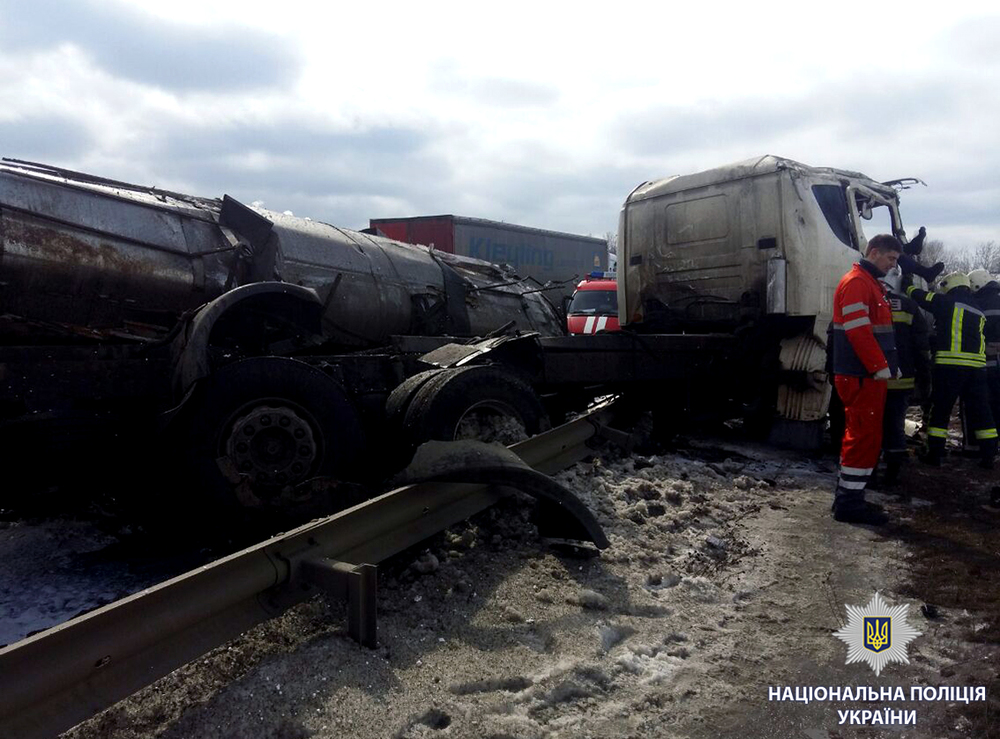 В Харькове на окружной перевернулась и загорелась фура. Фото, видео