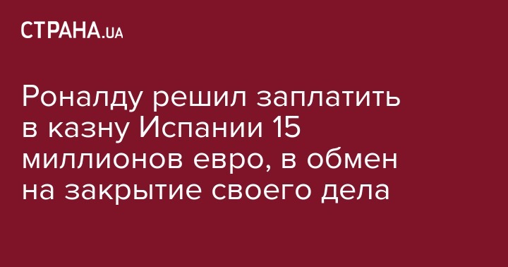 После долгих споров и бюрократической волокиты Роналду согласился выплатить в испанскую казну 14,7 миллиона евро, чтобы избежать возможного тюремного срока в пять лет.