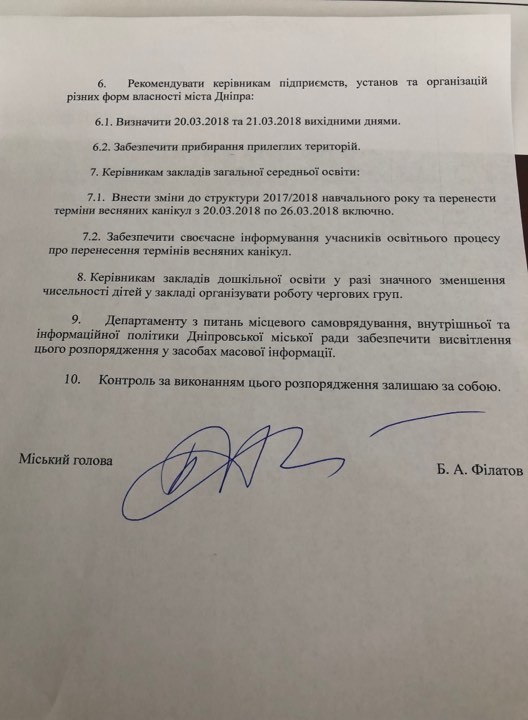 В Днепре вторник и среду 20 и 21 марта могут сделать выходными из-за непогоды. Об этом говорится в распоряжении мэра Днепра Бориса Филатова за 19 марта.