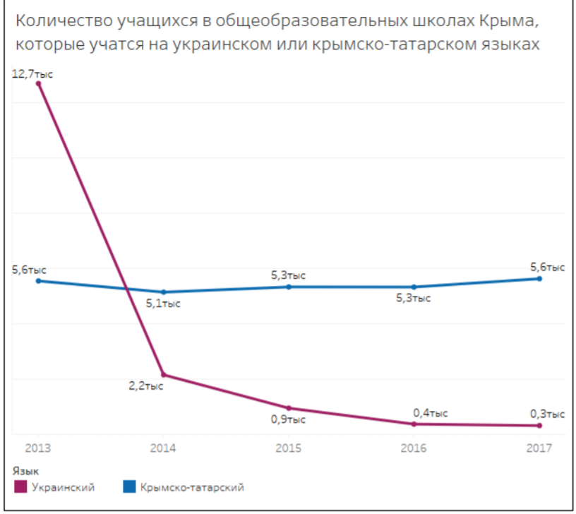 Есть вопросы и к "другой стороне". В "ЛДНР" продолжаются незаконные аресты и гонения на сектантов, а в Крыму резко упало изучение украинского языка. Правда, при этом выросло изучение крымскотатарского.