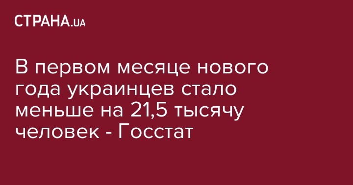 В течение первого месяца текущего года украинцев стало меньше на 21,5 тысяч человек. Об этом свидетельствуют данные Государственной службы статистики Украины.