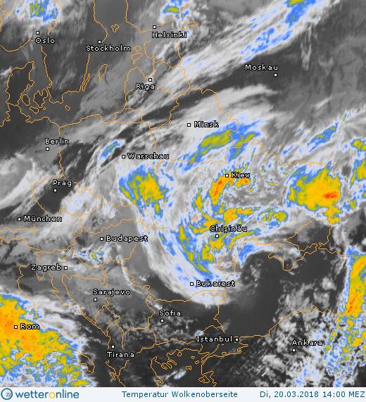 Синоптик Наталья Диденко в Facebook опубликовала фото циклона, который накрыл Украину с начала марта.