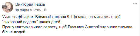 В соцсети обнародовано видео, на котором учительница физики школы №9 Василькова Киевской области обзывает и ругает ученика на уроке, называя его с@кой и г@вном.