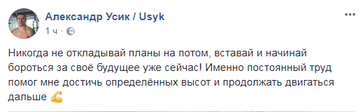 "Никогда не откладывай планы на потом, вставай и начинай бороться за своё будущее уже сейчас! Именно постоянный труд помог мне достичь определённых высот и продолжать двигаться дальше", - написал он.