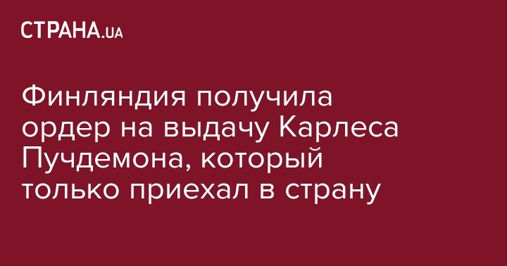 Полиция Финляндии получила ордер Испании на выдачу бывшего главы каталонского женералитета Карлеса Пучдемона и ведет обмен дополнительной информацией с Мадридом, сообщает ведомство в субботу.
