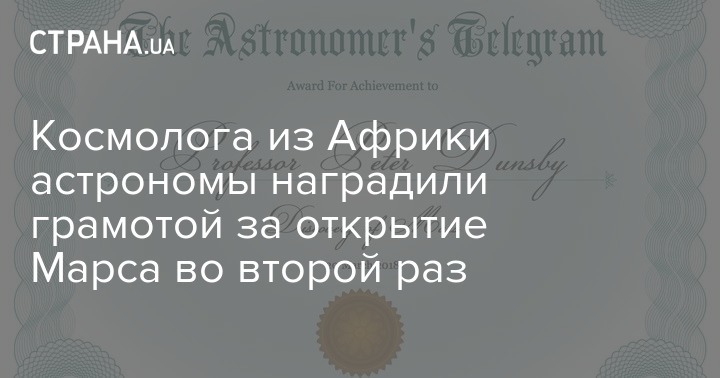 Космолога из Африки астрономы наградили грамотой за открытие Марса во второй раз