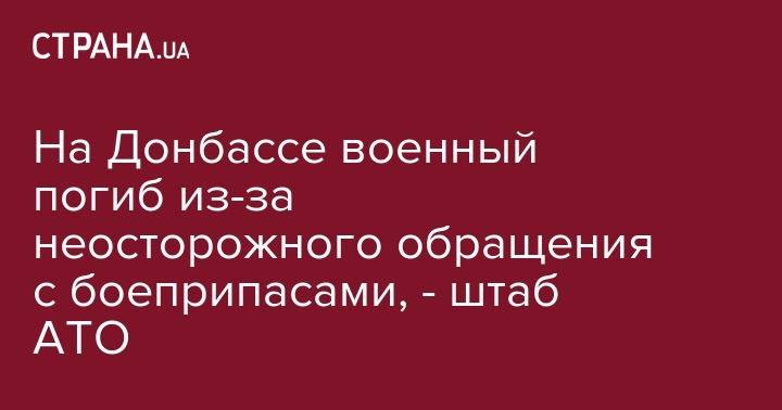 Сегодня, 24 марта, на Донбассе из-за неосторожного обращения с боеприпасами погиб украинский военный, еще один боец получил ранения. Об этом сообщает пресс-центр штаба АТО на своей странице в Facebook.