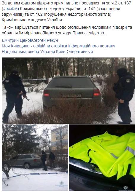 Открыто уголовное производство по признакам разбоя, захвата заложников и нарушение неприкосновенности жилья. Рассматривается вопрос об объявлении мужчинам подозрения и избрания им меры пресечения, ведется следствие. Сотрудники полиции проверяют задержанных на причастность к совершению других преступлений на территории области.
