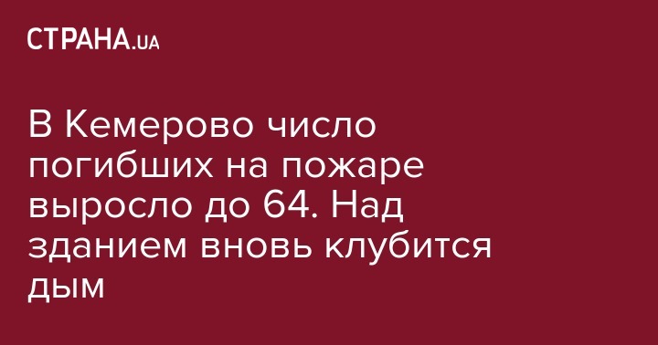 Количество погибших во время пожара в торговом центре Кемерово увеличилось до 64 человек. А над зданием ТРЦ вновь появился дым.