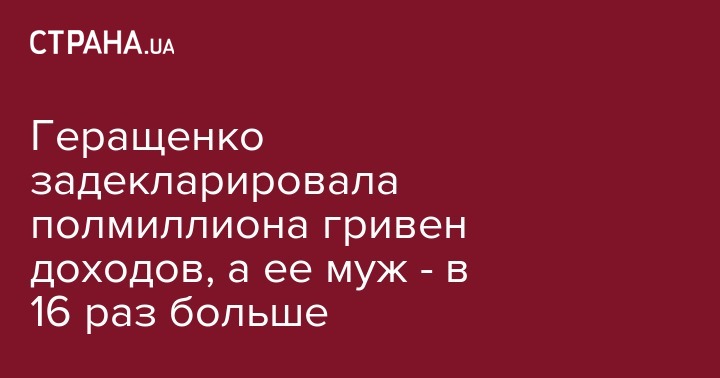 Геращенко задекларировала полмиллиона гривен доходов, а ее муж - в 16 раз больше