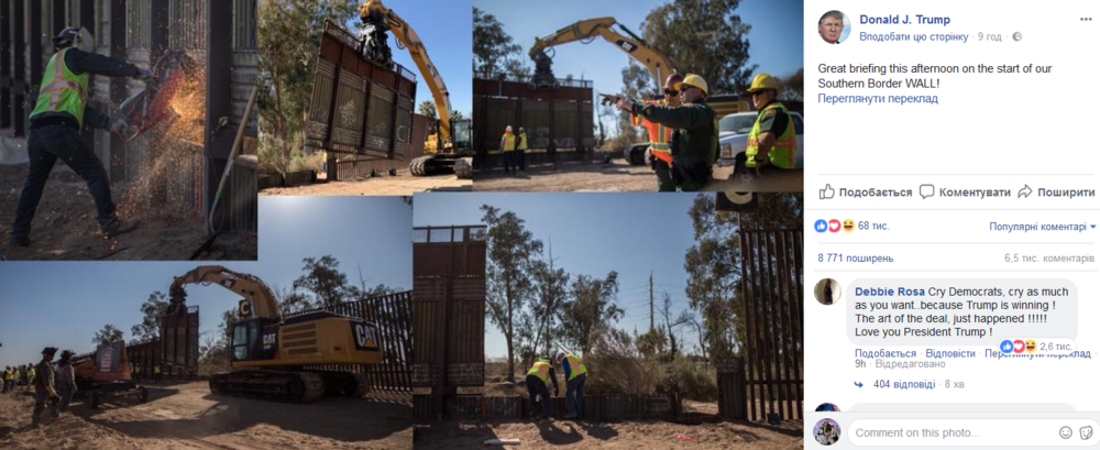 На своей странице в Facebook он выложил фотографии начала строительства заградительной стены на границе с Мексикой.