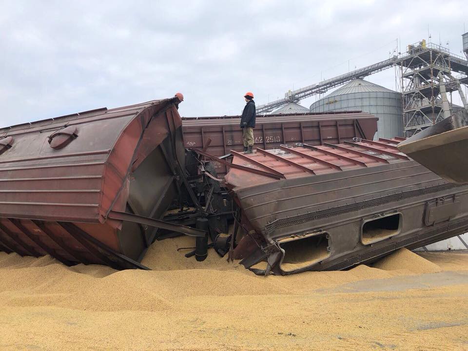 В Одесской области наполненный зерном железнодорожный состав сошел с рельсов на Ильичевском зерновом терминале.
