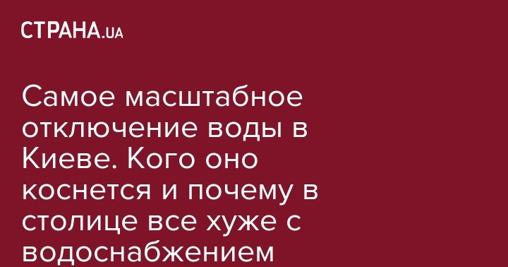 "Страна" разбиралась, где именно отключат воду - и почему в Киеве все чаще проблемы с водоснабжением.