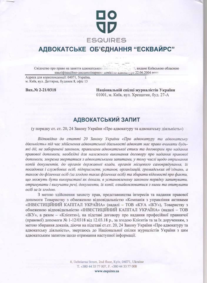Адвокаты инвестиционной компании ICU, которую нардеп Сергей Лещенко обвиняет в сомнительных операциях в пользу и экс-президента Виктора Януковича и президента Петра Порошенко, пришли в НСЖУ для уточнения: является ли народный депутат журналистом. Об этом глава НСЖУ Сергей Томиленко написал на Facebook.