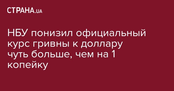 НБУ понизил официальный курс гривны к доллару чуть больше, чем на 1 копейку
