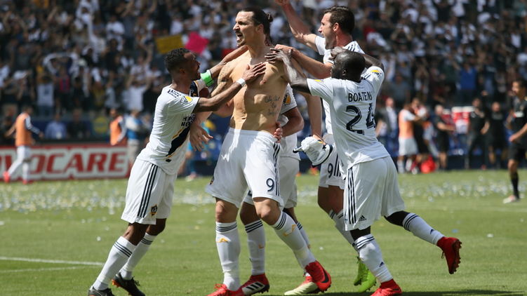 Шведский нападающий Златан Ибрагимович выдающимся образом дебютировал в чемпионате США по футболу, забив гол едва ли не с центра поля.