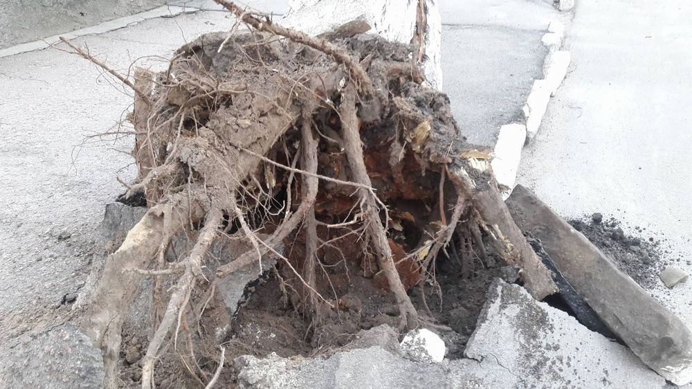 В соцсетях появились десятки фото вырванных с корнем деревьев и разрушений, которые нанес сильный ветер.
