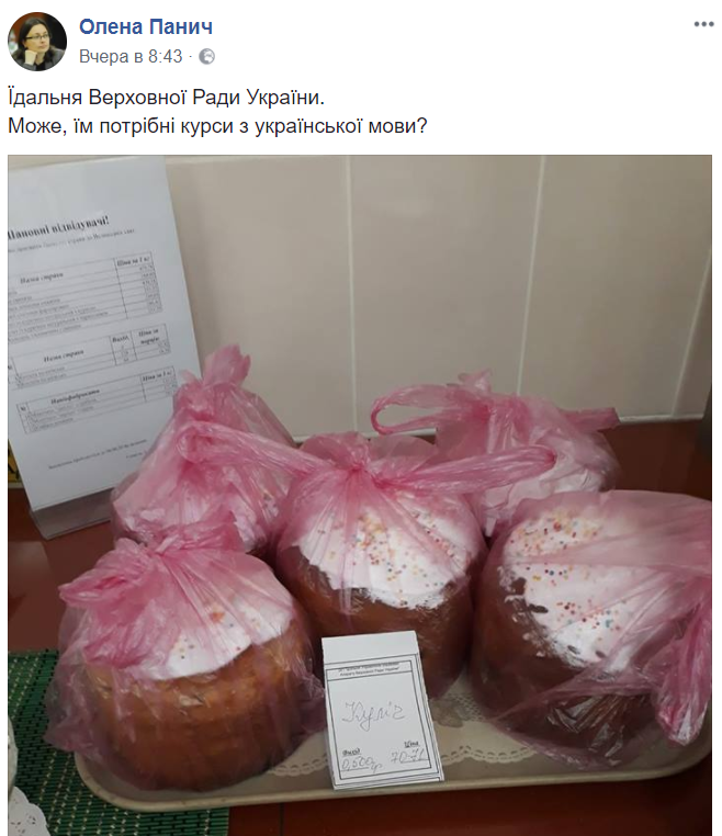 А вот активистка Елена Панич обнаружила и вовсе невиданное кощунство – куличи в столовой Верховной Рады.