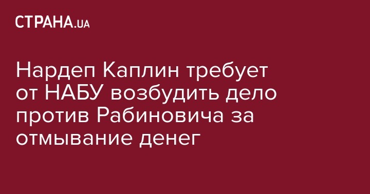 Нардеп Каплин требует от НАБУ возбудить дело против Рабиновича за отмывание денег