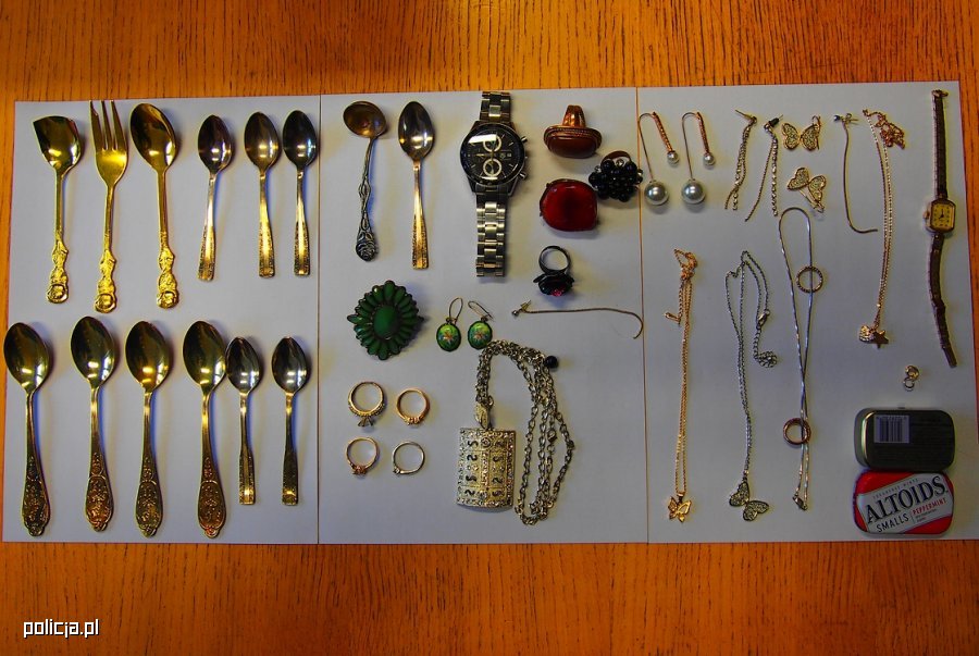 Драгоценные вещи, найденные полицией во время обысков квартиры злоумышленников Фото: Policja.pl