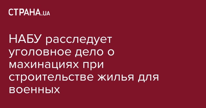 В НАБУ ведут расследование о нарушениях при строительстве жилья для военнослужащих.  Об этом сообщают "Наші гроші".
