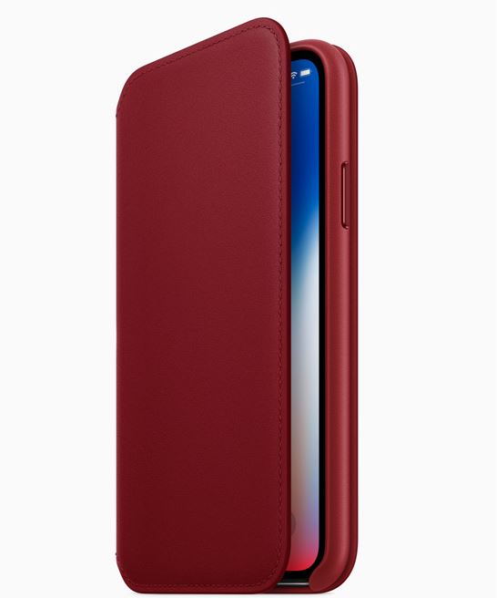 Кроме того, Apple представила новый чехол Folio для iPhone X из серии (PRODUCT) RED, который можно будет купить уже во вторник. Чехол изготовленный из специально обработанной кожи.