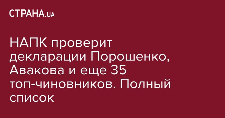 Национальное агентство по вопросам предотвращения коррупции (НАПК) начало полную проверку электронных деклараций топ-чиновников Украины.