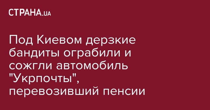 "Злоумышленники подрезали легковой автомобиль, в котором находился начальник передвижного отделения связи "Укрпочты" и водитель. Применив слезоточивый газ, похитили у них около 200 тыс. гривен. После чего подожгли один из своих автомобилей и скрылись. В пламени также сгорело транспортное средство пострадавших", – сообщают в полиции Киевской области.