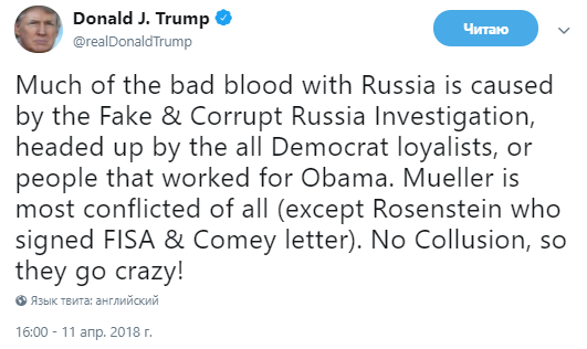 По его мнению, дело провалили демократы-лоялисты или люди, которые работали на Обаму. Особенно конфликтным он назвал спецпрокурора Мюллера.