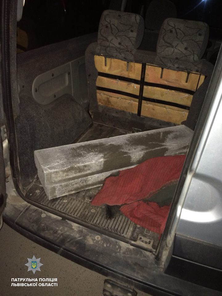 Экипаж патрульной полиции остановил злоумышленника. В багажнике автомобиля лежали два бордюра. На место происшествия вызвали следователей Сиховского отдела полиции.