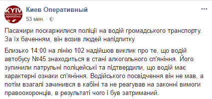 В Киеве из автобуса с пассажирами силой вывели пьяного водителя без прав