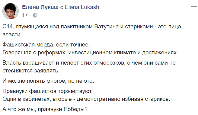 "С14, глумящаяся над памятником Ватутина и стариками – это лицо власти.