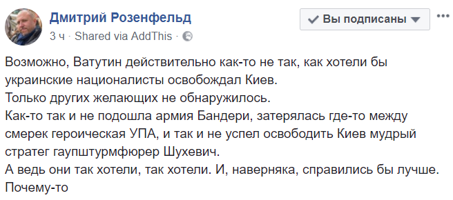 "Возможно, Ватутин действительно как-то не так, как хотели бы украинские националисты освобождал Киев.