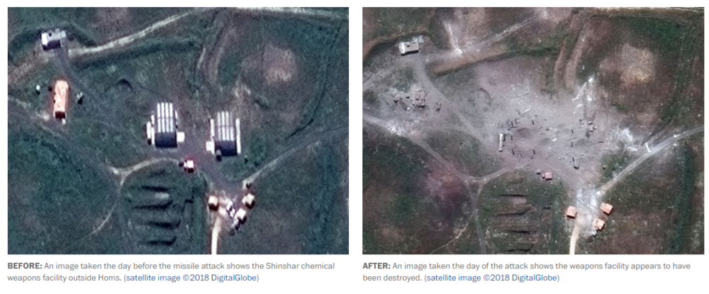 Ранее Пентагон сообщал, что союзные войска уничтожили три запланированные цели. Первой целью был Центр исследований и разработок в Барзасе, за пределами Дамаска.