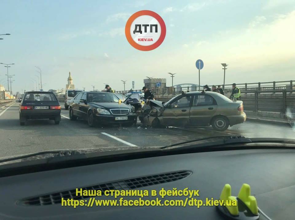 В воскресенье, 15 апреля, в Киеве на Подоле произошло ДТП с участием автомобилей Mercedes и Daewoo Lanos.