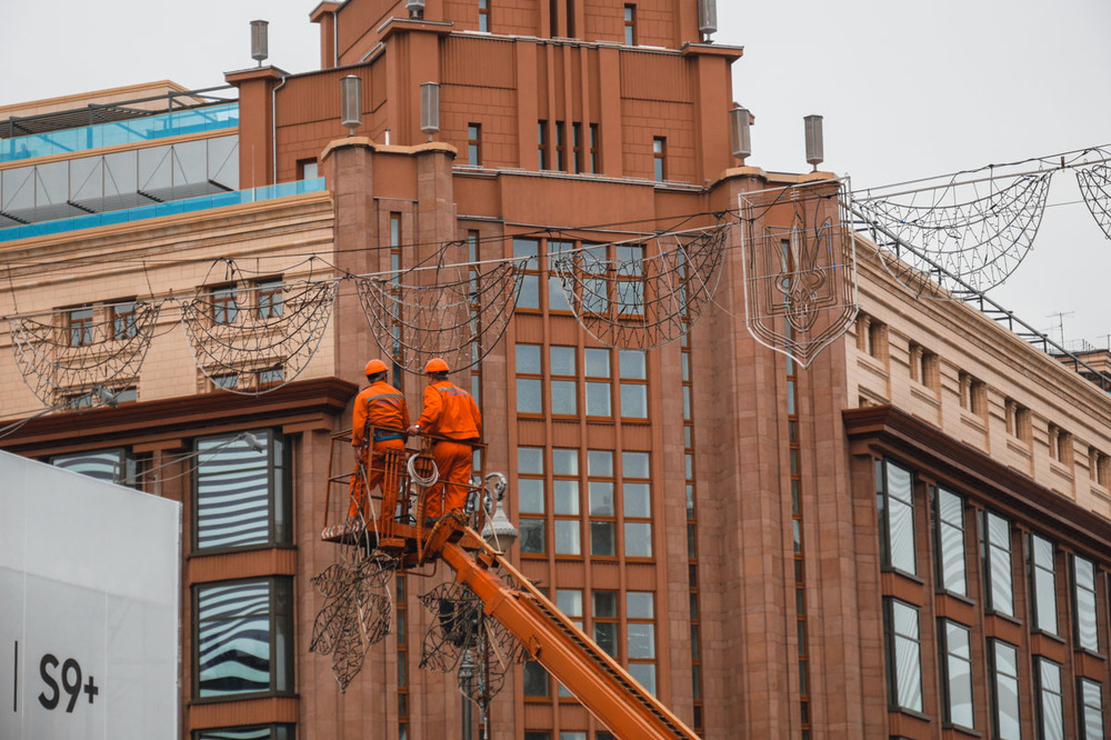 С самого утра вторника, 17 апреля, спецтехнка частично перекрыла одну из полос движения, передвигаясь в сторону Майдана Незалежности по мере продвижения работ. Новые украшения будут висеть там до осени.