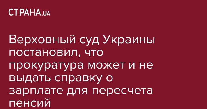 Верховный суд Украины постановил, что прокуратура может и не выдать справку о зарплате для пересчета пенсий