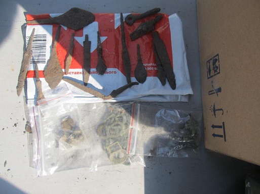 "В ходе осмотра, в рюкзаке водителя, 51-летнего гражданина Украины, выявлено значительное количество предметов старины. Среди обнаруженного - 14 наконечников к стрелам и копьям, 12 пряжек, 5 крестиков, 6 пуговиц и один элемент кольца. Все предметы ориентировочно датируются XIV - ХV веками", - говорится в опубликованном сообщении.
