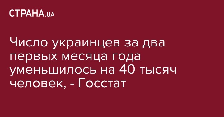 В первые два месяца 2018 года количество населения Украины сократилось на 40,1 тыс. человек. Об этом сообщает Государственная служба статистики.