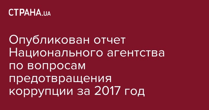 Опубликован отчет Национального агентства по вопросам предотвращения коррупции за 2017 год