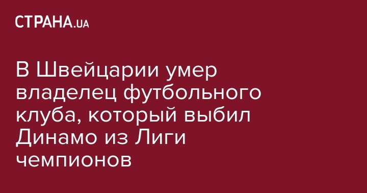 В Швейцарии умер владелец футбольного клуба, который выбил Динамо из Лиги чемпионов