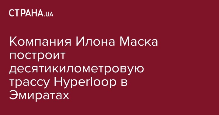 Компания Hyperloop Transportation Technologies подписала с компанией Aldar Properties соглашение о строительстве в Объединенных Арабских Эмиратах трассы Hyperloop длиной десять километров.