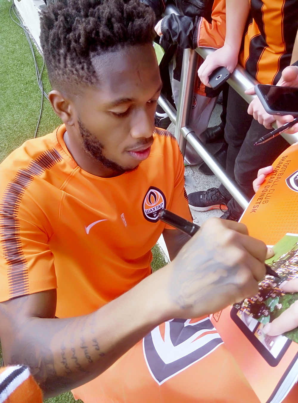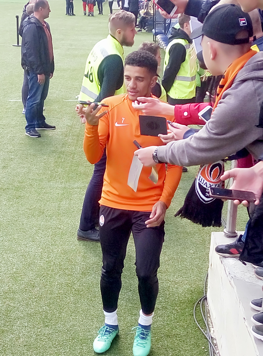 Особую радость от общения с болельщиками выказывал молодой бразильский новичок "Шахтера" - Додо.