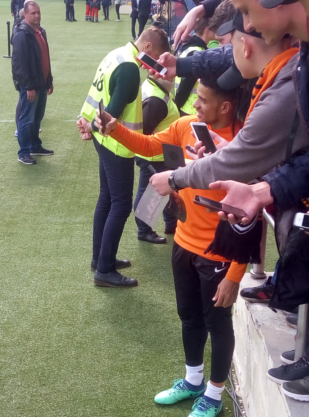 Проведя завершающий тренировку спарринг футболисты "Шахтера" направились к фанатам, с удовольствием подписывая как клубную атрибутику, так и простые тетради. Не отказывались футболисты и от дружеских selfie.