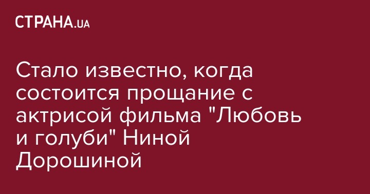 Прощание с известной актрисой Ниной Дорошиной, сыгравшей одну из главных ролей в фильме "Любовь и голуби", пройдет в Московском театре "Современник" во вторник, 24 апреля.