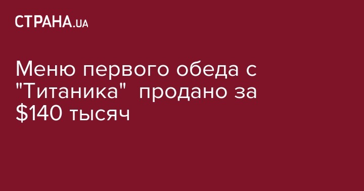 Меню первого обеда с "Титаника" продано за $140 тысяч