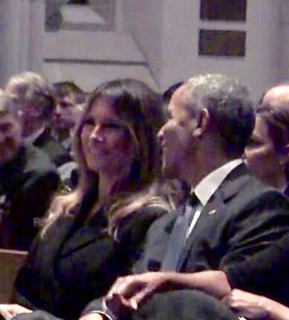 На кадрах действительно видно, как мило общаются Мелания Трамп и Барак Обама, которым выпала возможность сидеть рядом.