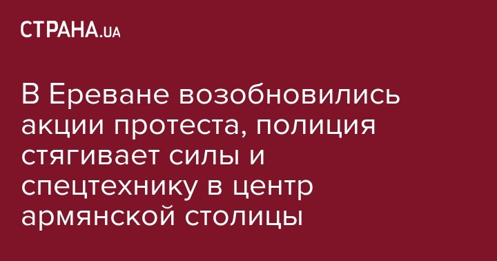 На возобновившиеся акции протеста отреагировала армянская полиция, которая начала стягивать в центр Еревана силы и спецтехнику.