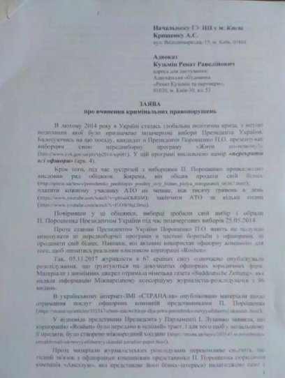 Экс-заместитель генпрокурора Ренат Кузьмин сообщил, что украинский суд обязал правоохранительные органы возбудить уголовное дело в отношении президента Петра Порошенко в связи с созданием преступной организации для уклонения от уплаты налогов.